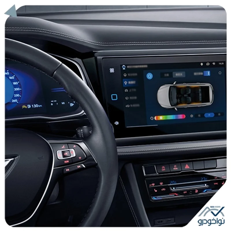 تهویه مطبوع VS7 از نوع اتوماتیک دو نقطهای با پنل کنترل لمسی است که امکان تنظیم دمای مستقل برای راننده و سرنشین جلو را فراهم میکند.