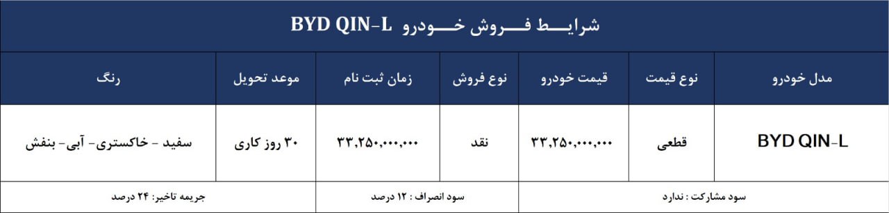 ثبت نام BYD QIN L | بی وای دی چین ال