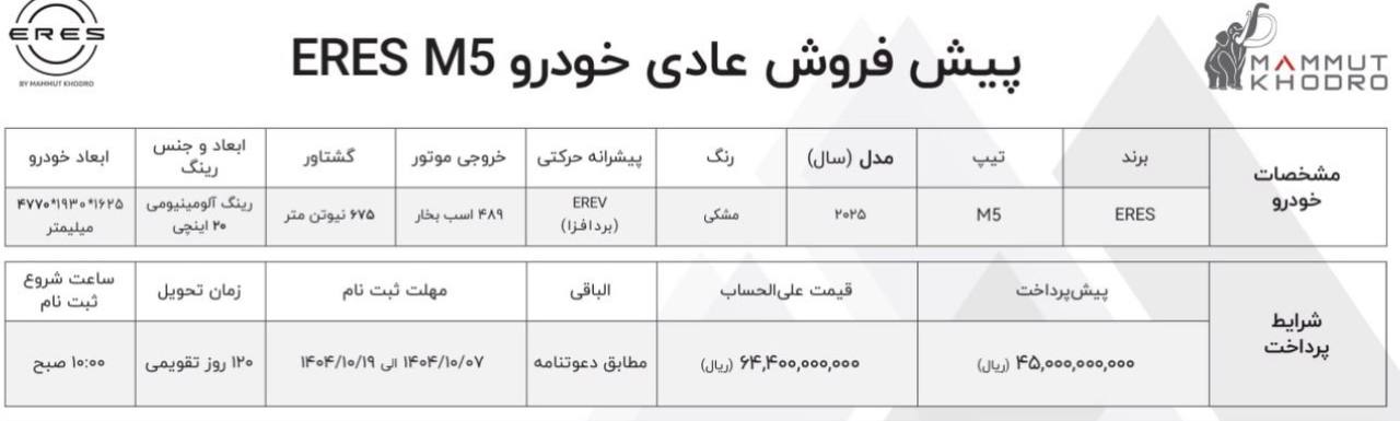 برای مشاهده مشخصات فنی خودرو ERES M5 وارد این