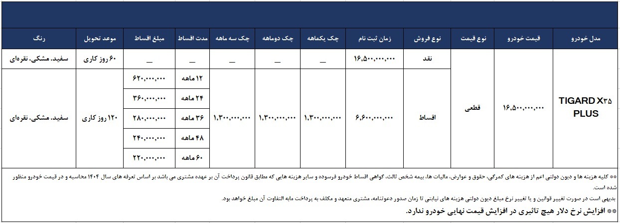 ثبت نام تیگارد ایکس 35 پلاس | Tigard X35 Plus